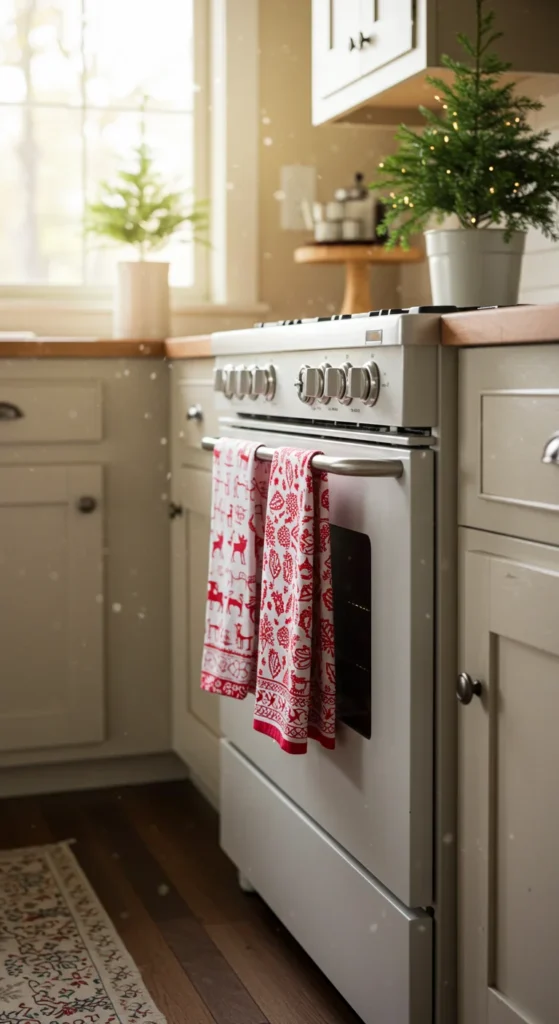Swap out everyday dish towels for ones with seasonal patterns—think plaid, snowflakes, or reindeer prints.