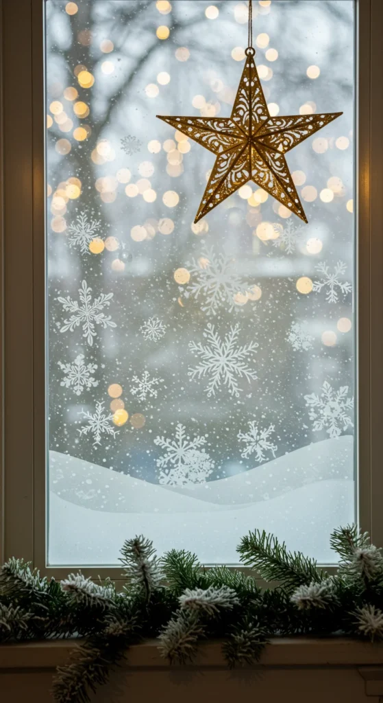 Hang paper snowflakes, star ornaments, or small wreaths for visual interest.