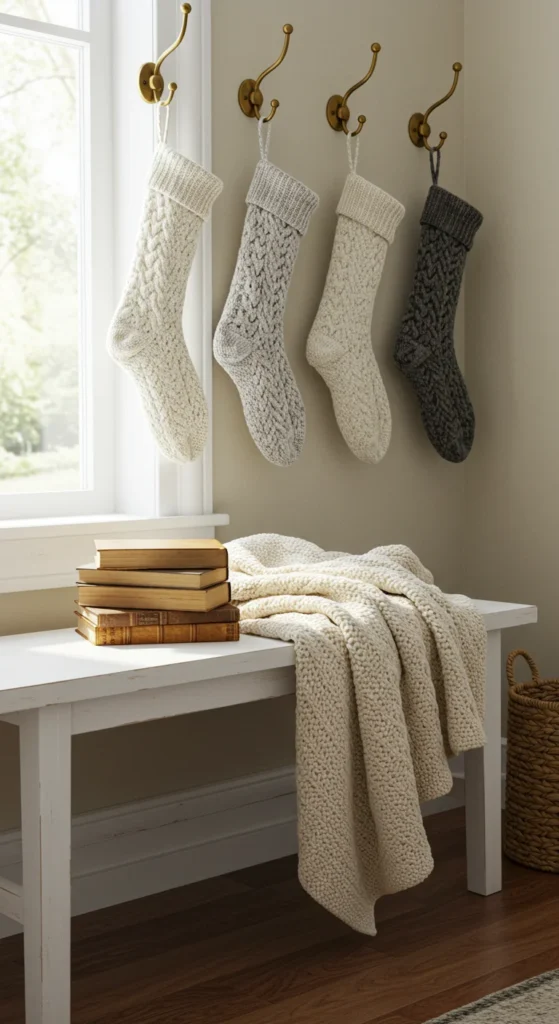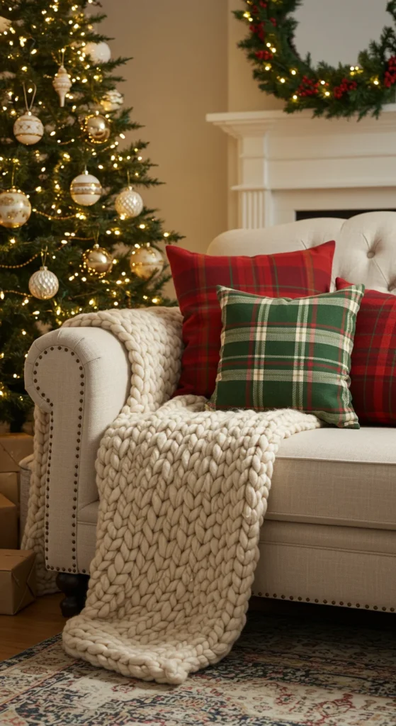 Add chunky knit or fleece throws in rich reds, greens, or creams for warmth and style.