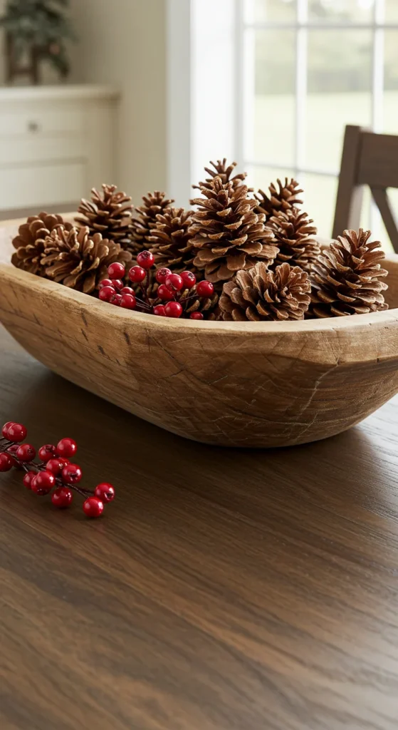 Add accents such as pinecones, berries, or ribbon to match your color scheme.