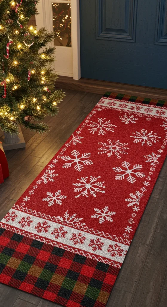 Swap your regular rug for one with plaid, snowflake, or festive patterns.