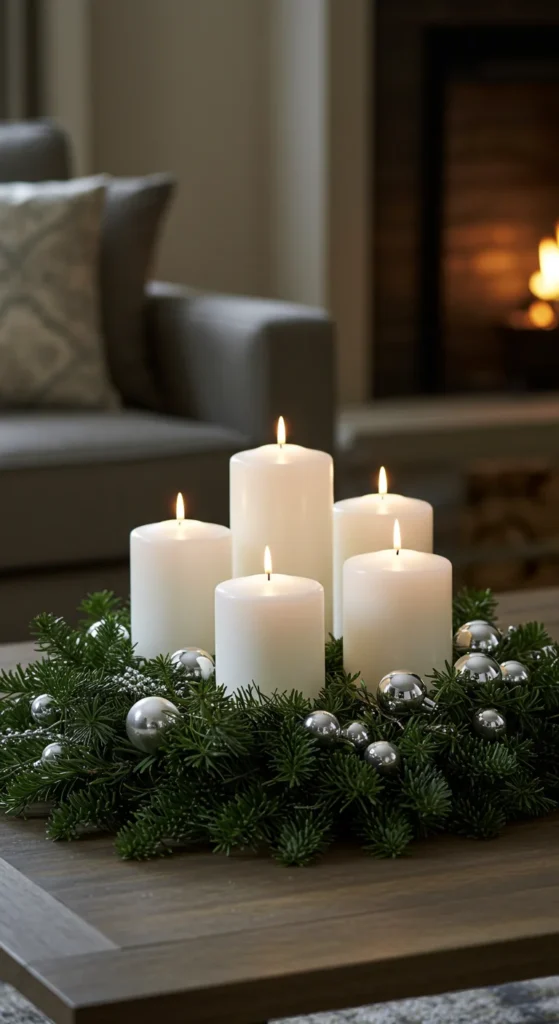 Cluster candles of varying heights on trays, mantels, or dining tables for layered light.