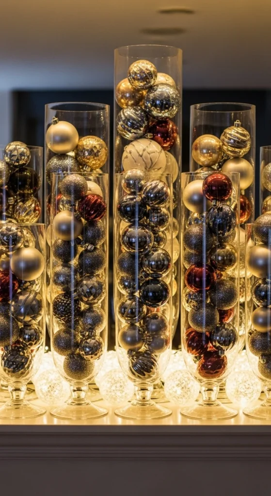 11. Ornament-Filled Clear Vases