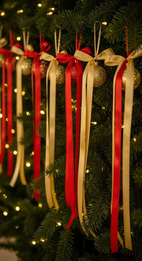 2. Ribbon-Wrapped Tree Ornaments