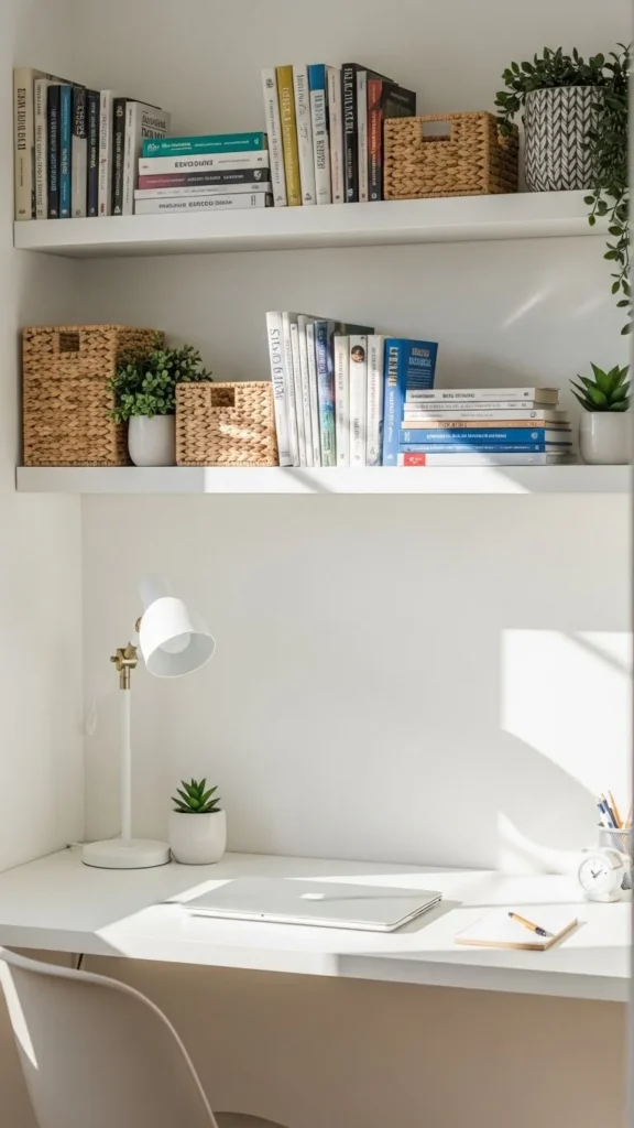 Use these to store books, supplies, and small décor items. This keeps your desk clear and your corner tidy.