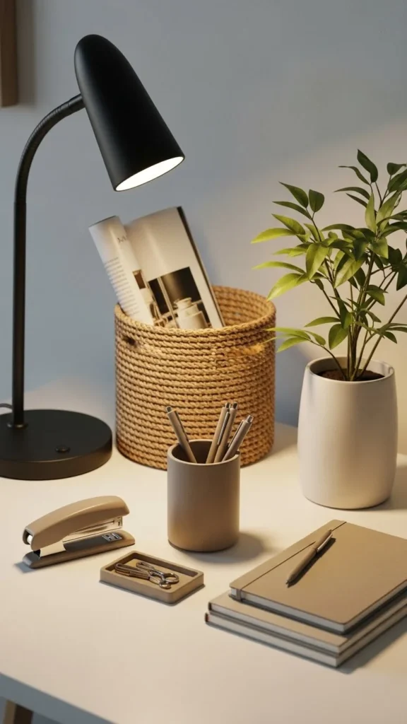 - Light-colored desk accessories