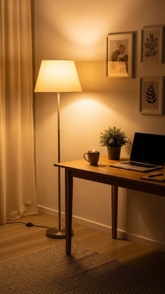 You don’t need to drill to decorate a beautiful home office. With peel-and-stick décor, freestanding furniture, and soft lighting, your rental workspace can look stylish and feel personal.