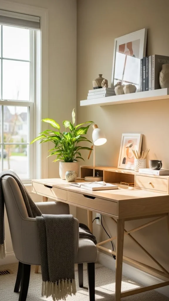 A cozy home office makes long workdays easier on both your body and your mind. With warm colors, soft textures, and gentle lighting, your workspace becomes a place you actually enjoy being in.