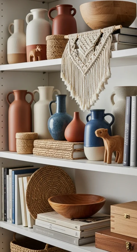 This avoids stiff, overly styled shelves. Keep groupings loose rather than tightly packed.