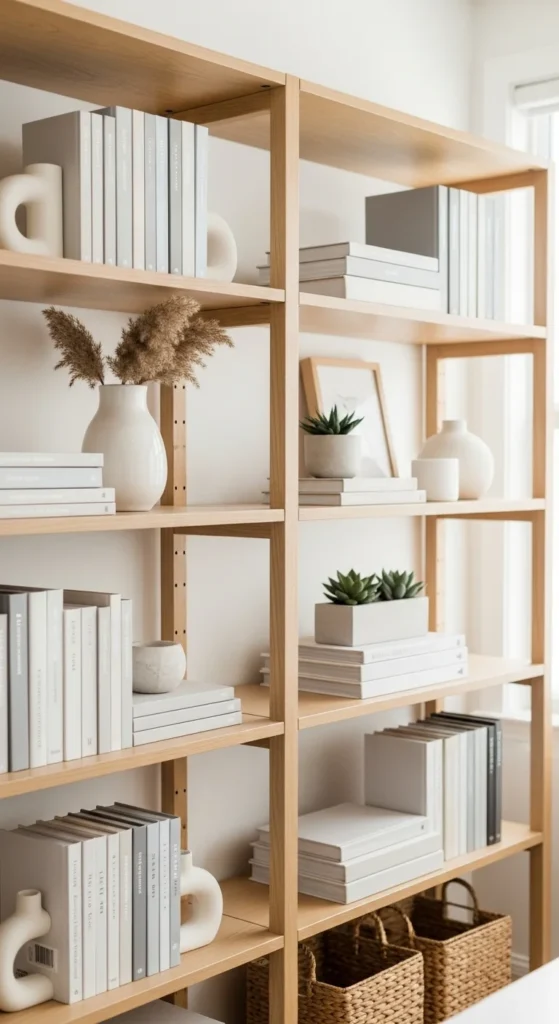 Styling a home office bookshelf beautifully is about balance, restraint, and intention. When books are organized, decor is limited, and empty space is respected, shelves feel calm and polished rather than busy.