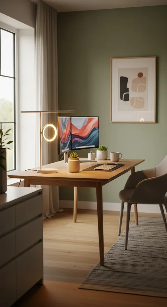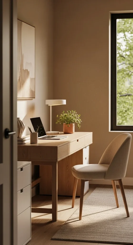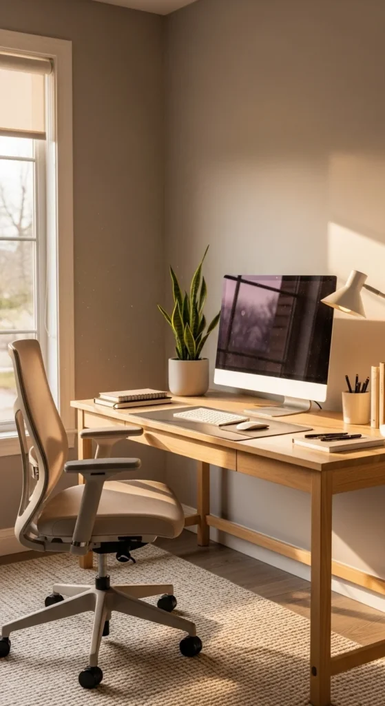 A modern cozy home office is all about balance. Clean lines give you focus. Soft textures and warm tones give you comfort. Together, they create a space that looks beautiful and feels good to work in.
