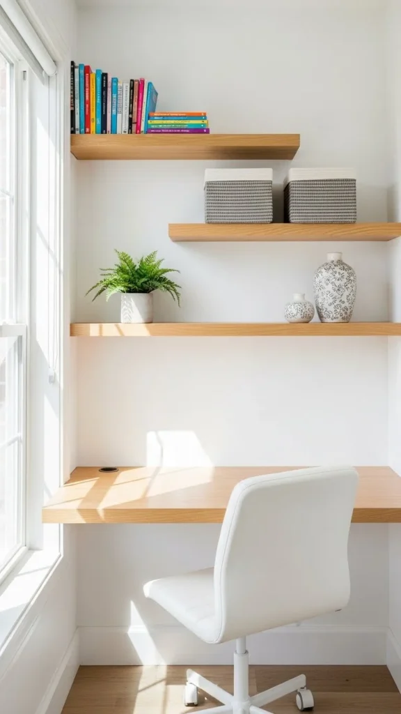 Styling a small home office is all about balance. Light colors, simple furniture, vertical storage, and just a few well-chosen décor pieces can turn even the tiniest corner into a space that feels open and inviting.