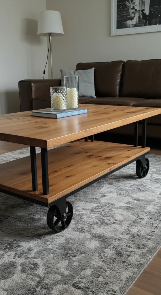 For a DIY option, repurpose old pallets with steel caster wheels to create a one-of-a-kind table.