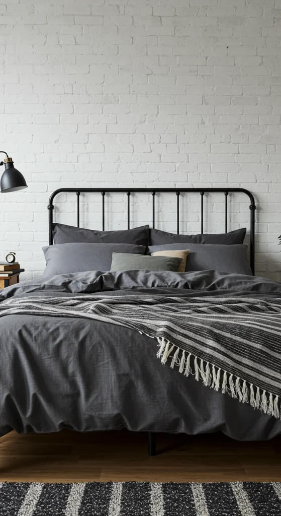 Stick to neutral bedding in gray, black, or beige with subtle patterns.