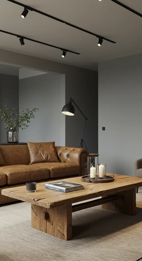 Add wooden side tables or warm-toned lamps to soften spaces dominated by steel or concrete.