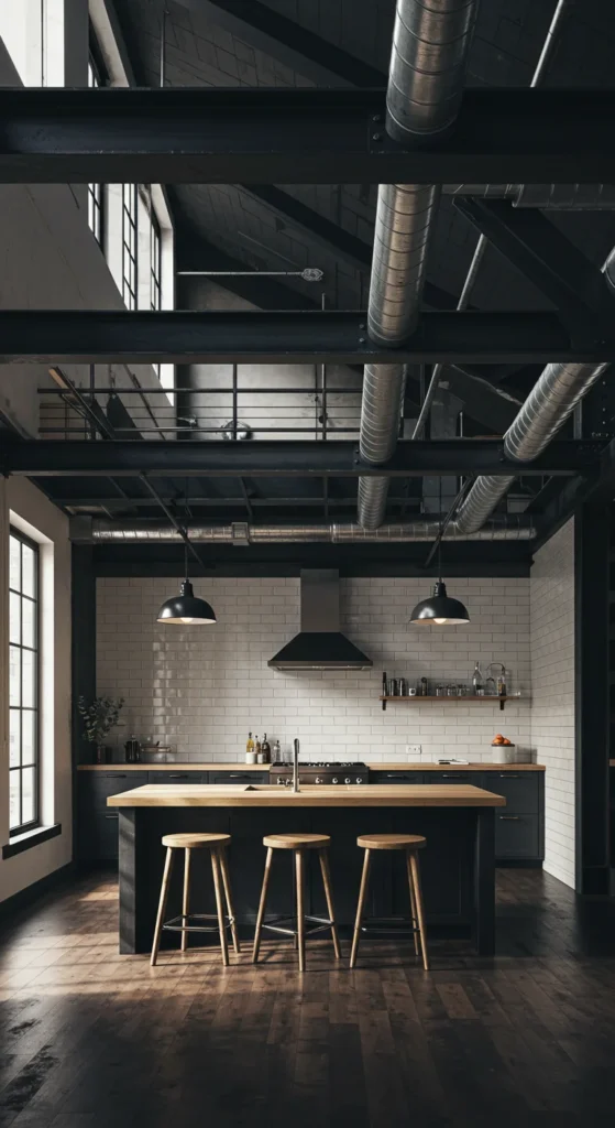Black metal details tie the industrial look together.