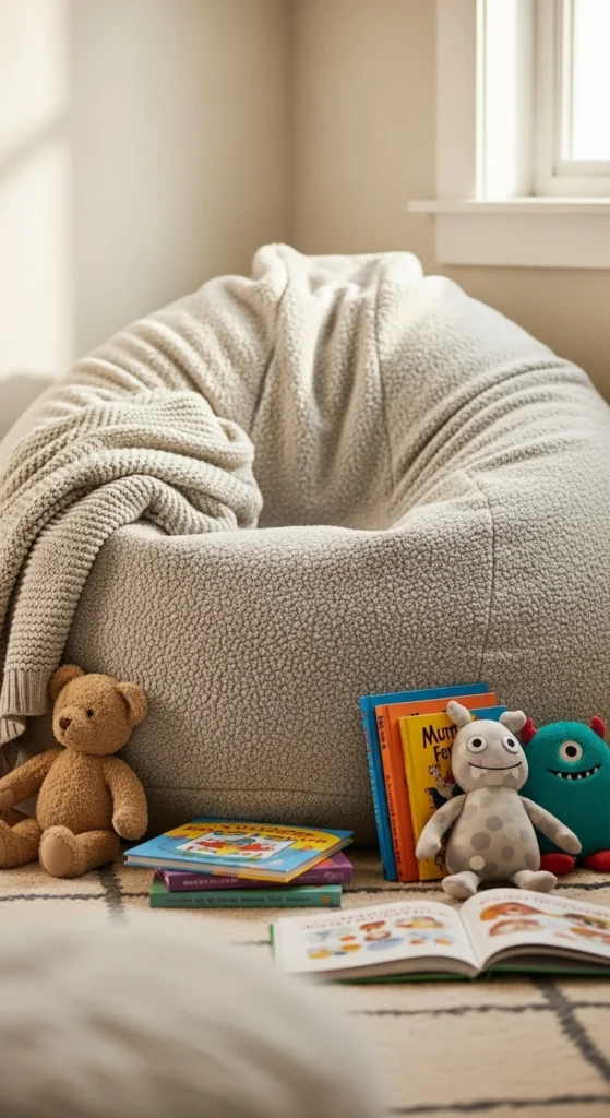 A beanbag chair gives kids a comfy spot to relax. Choose a washable cover in a color that fits the room. Place it in a corner with a small basket of books or toys nearby. Kids enjoy sitting on beanbags while reading or watching cartoons. Make sure the chair is sturdy and filled evenly. Rotate the beanbag occasionally to keep its shape. This simple addition makes the room feel inviting.