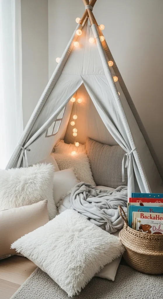 String lights create a warm, calm atmosphere. Choose soft white lights instead of bright colors. Hang them above the bed, around shelves, or along a canopy. Use adhesive hooks to avoid damaging walls. Kids enjoy the soft glow during bedtime stories. Make sure to choose battery-operated lights for safety. Replace batteries regularly to maintain an even shine. String lights add a cozy touch that kids enjoy at night.