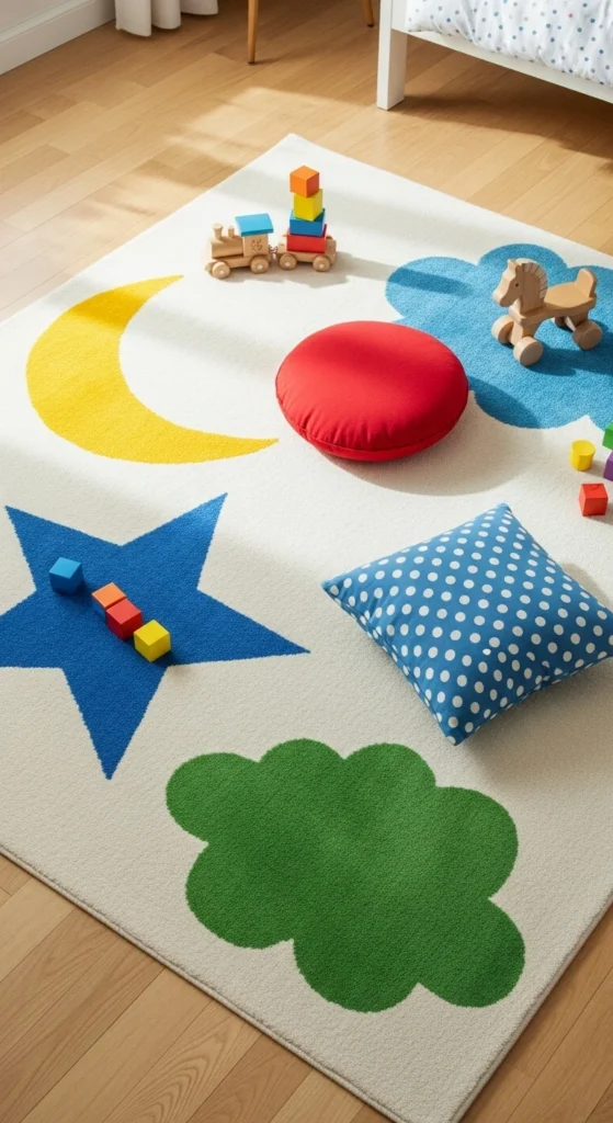 A soft rug adds warmth and makes playtime comfortable. Choose a design that matches your child’s personality—bright stripes, sweet animals, or simple geometric shapes. Look for washable materials since spills happen often. A large rug defines the play area and helps keep toys organized. Add small floor cushions for added comfort. Rugs also help reduce noise, especially in shared bedrooms. When picking colors, keep the room balanced by adding one bold rug and keeping the bedding simple. Rotate the rug to give the room a fresh feel without buying new decor.