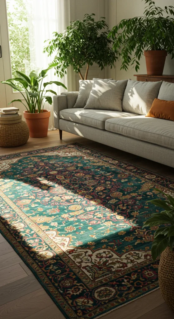 A rug can ground the entire space. Choose one with bold patterns or colors to make the room feel alive. Even if your furniture is plain, a patterned rug instantly makes things interesting. Don’t feel pressured to buy new—many secondhand shops have large rugs at low prices. You can also layer a smaller patterned rug on top of a simple jute one for a textured look. This trick works especially well in apartments or rentals. Washable rugs are another smart pick, especially for homes with kids or pets. Remember, the rug doesn’t have to be expensive—just eye-catching enough to stand out.