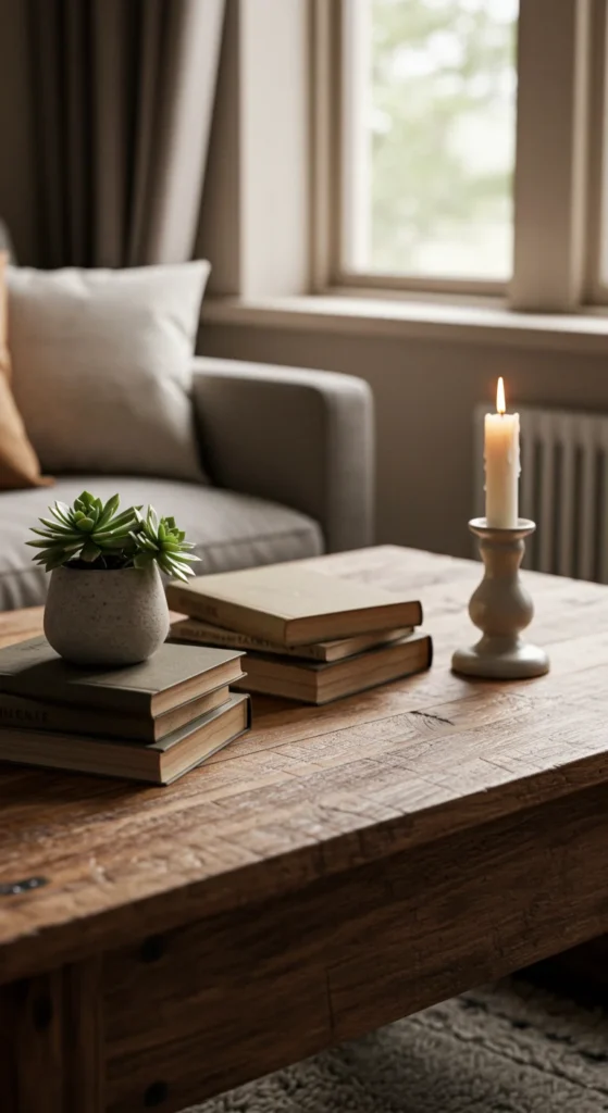A styled coffee table feels like the centerpiece of the room. Use the “rule of three”—a stack of books, a plant, and a candle can look chic without clutter. Trays are great for grouping items and keeping things tidy. If you don’t want to buy décor, use what you already have: a pretty mug, a small basket, or even a handmade craft. A styled table feels thoughtful but doesn’t have to be complicated.