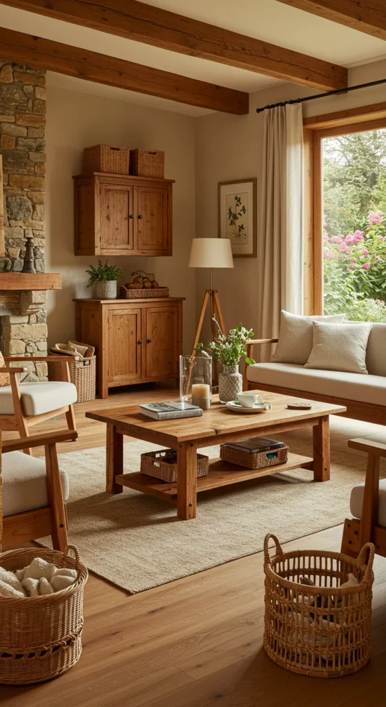 Natural materials always feel warm and welcoming. Add a wooden side table, woven baskets, or stone coasters. These details don’t need to be costly—many thrift shops and discount stores carry items in natural finishes. Even a simple bowl of pinecones or seashells from outside can double as décor. Guests appreciate these grounding, earthy touches.