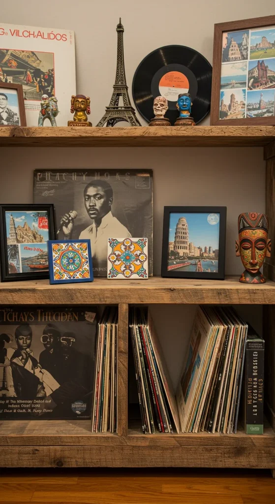 Show off what makes you unique. Whether it’s books, vinyl records, or travel souvenirs, displaying collections adds personality. Use shelves, shadow boxes, or trays to group items. This keeps the look curated instead of cluttered. DIY projects like spray-painting old frames or making custom labels can make the display cohesive. Guests will love spotting pieces that tell your story.
