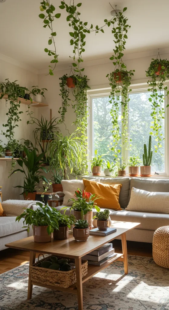 Plants bring instant life to any living room. Place a tall plant like a fiddle-leaf fig in a corner and smaller pots on tables or shelves. Mix real with realistic faux plants if you’re worried about upkeep. Even a single vine trailing down a bookshelf can look stunning. Don’t overlook budget hacks—propagate cuttings in jars of water, or shop local markets instead of big box stores. Plants not only look beautiful but also make guests feel relaxed.