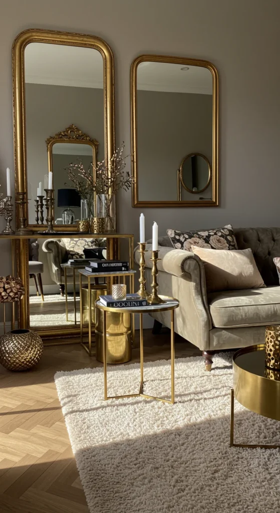 Mirrors make a room feel larger and brighter. Place one across from a window to reflect natural light. Choose a bold frame to make it a focal point, or go frameless for a minimal style. Thrift shops often have beautiful mirrors that just need a little paint or polish. For renters, lean a large mirror against the wall instead of hanging. Guests will notice how airy your living room feels without realizing the trick is just a mirror.