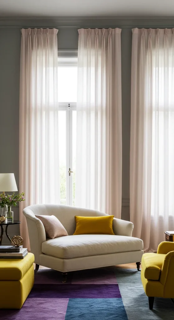 Hang curtains high and wide to make your windows look grand. Even basic curtains from a discount store look stylish when placed correctly. Extend rods beyond the window frame so curtains don’t block natural light. This small trick gives the illusion of taller ceilings. Guests often can’t pinpoint why the room feels spacious—it’s the curtain placement doing the work.