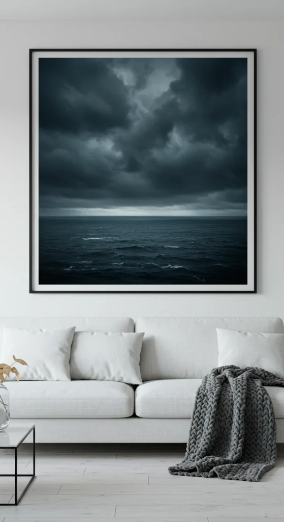 Oversized wall art creates instant drama. One large piece often looks more polished than several small ones. You can DIY this by printing a digital art download and framing it in an affordable large frame. Another idea is stretching fabric over a canvas frame for a unique look. If you’re renting, use removable hooks to hang without damage. Guests will think you invested in an expensive gallery piece, when in reality, it could cost under $50.