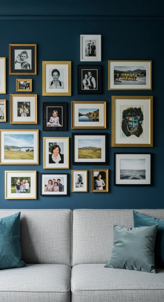 A gallery wall adds personality and makes your space memorable. Mix family photos, art prints, and even framed fabric swatches. Keep frames in one color for a polished look, or mix them for something eclectic. You don’t need to buy everything at once—start small and grow your wall over time. Affordable prints from online shops or thrifted art make this a wallet-friendly project. Guests will love looking closely at the details that reflect your style.