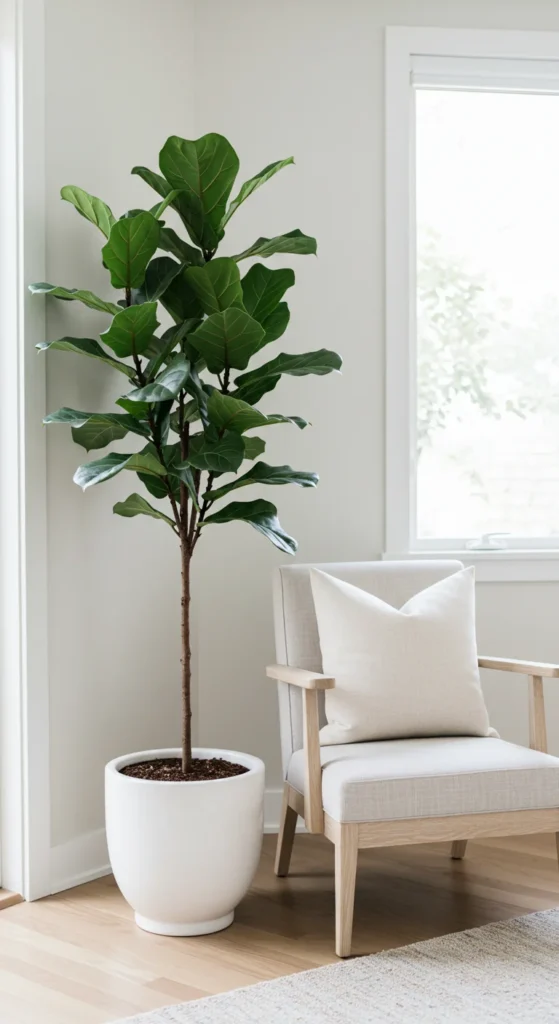 Plants add life to minimalist interiors but too many can feel busy. Stick to one or two statement plants in neutral pots.