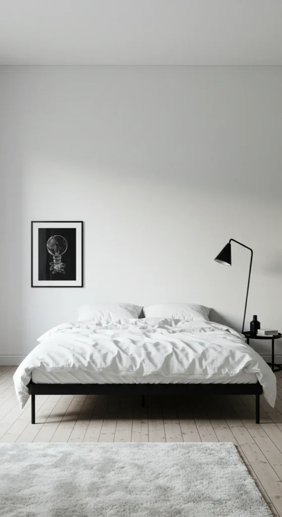 Minimalist lighting is sleek and understated. Avoid bulky chandeliers or ornate lamps that distract from the simplicity of the room.