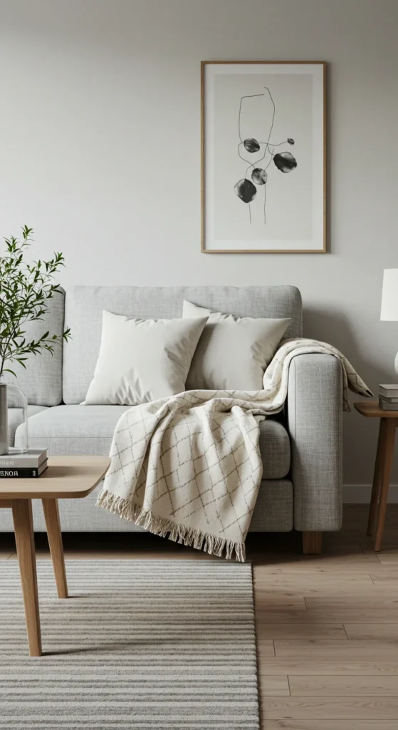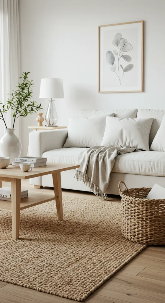 Natural fibers bring warmth and depth without overwhelming a minimalist look. Materials like jute, cotton, linen, and wood add subtle texture to an otherwise plain space.