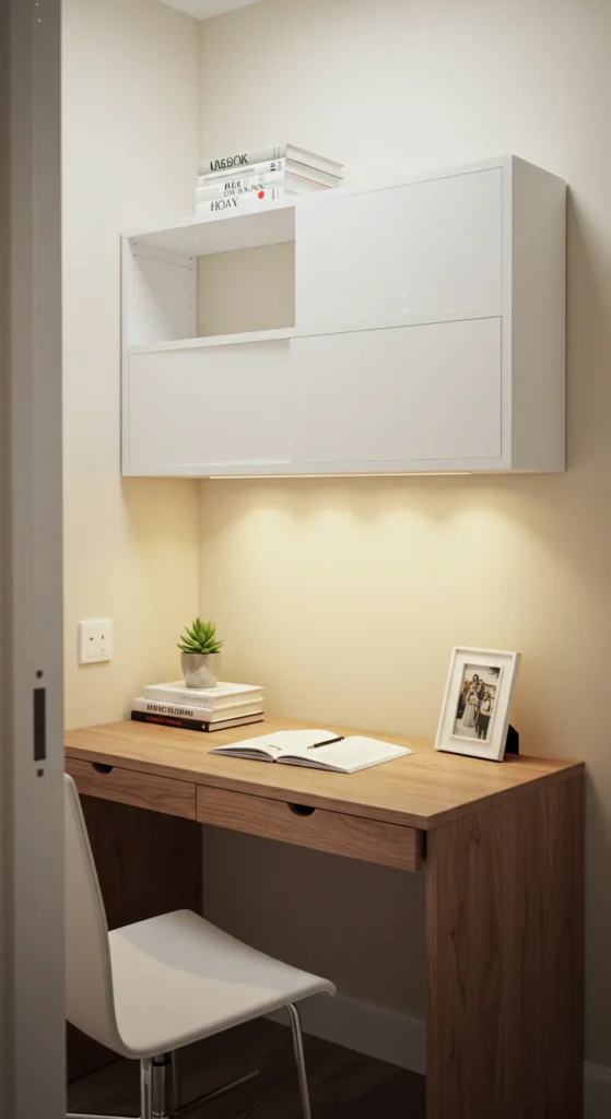 Wall-mounted shelves free up floor space and keep the room open. They’re great for displaying a few chosen items neatly.