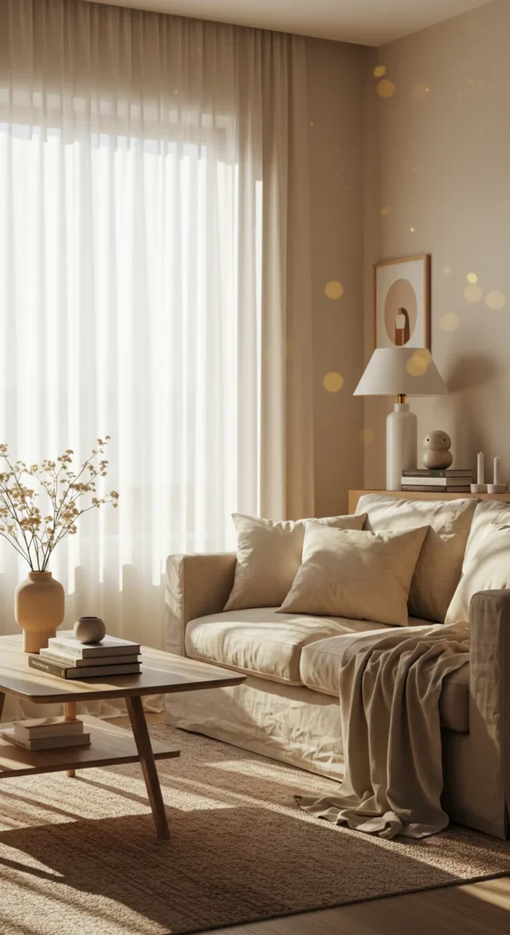 Start by painting walls in one soft tone. Pair with matching textiles like curtains or rugs in complementary neutrals. This approach works well in small spaces because it reduces visual clutter.
