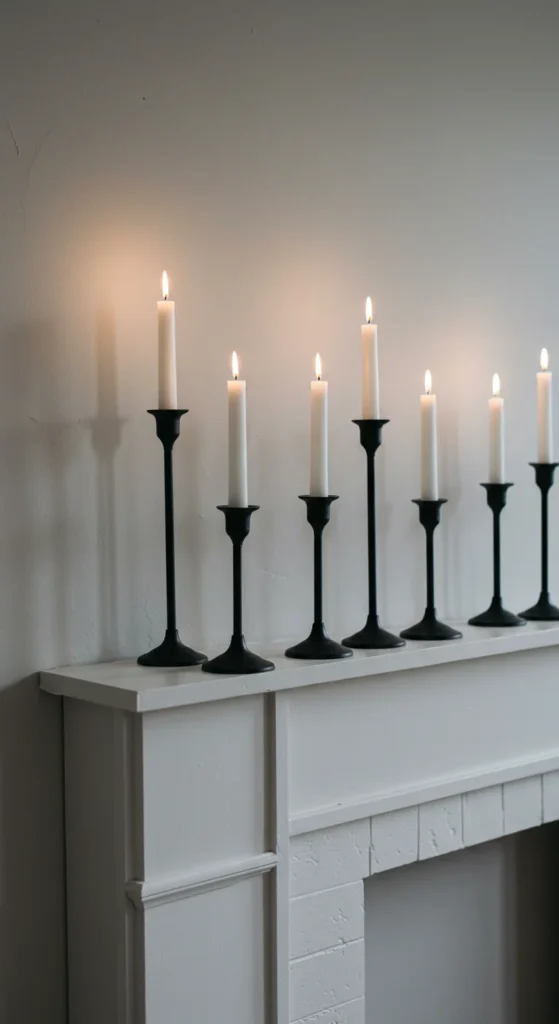 - Opt for matte black pendant lights or sconces to contrast with light walls.