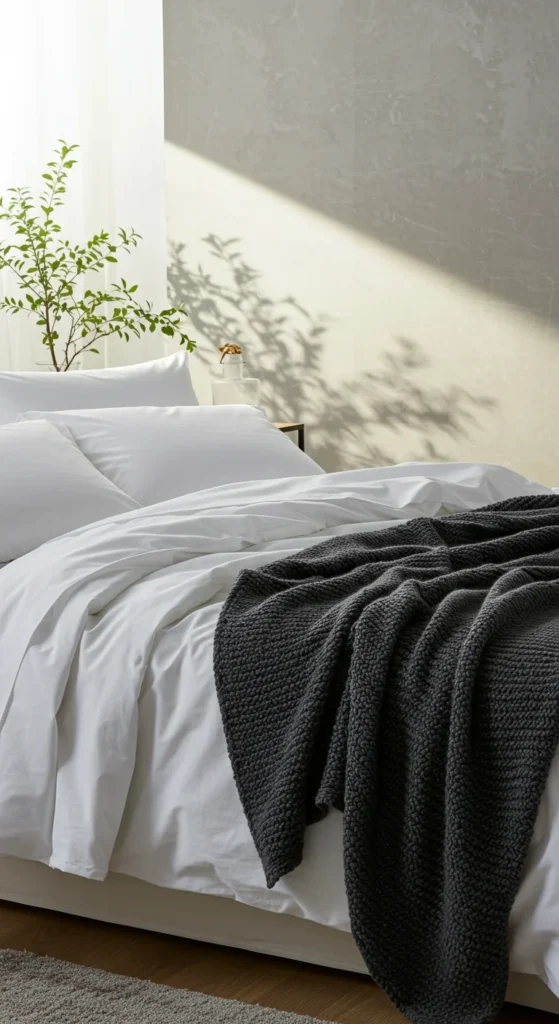 - Mix textures like linen, cotton, and knits to keep the bed inviting.