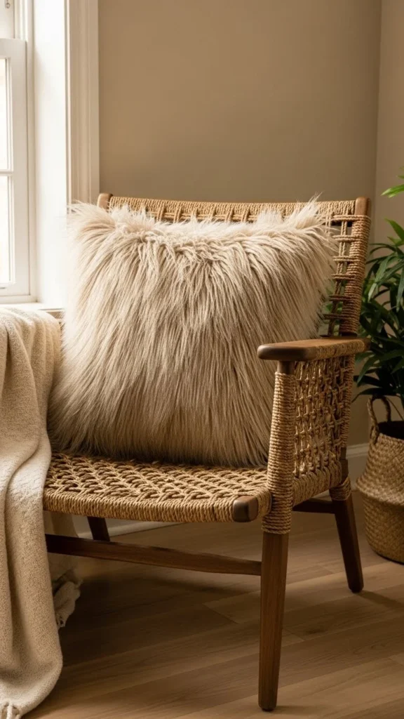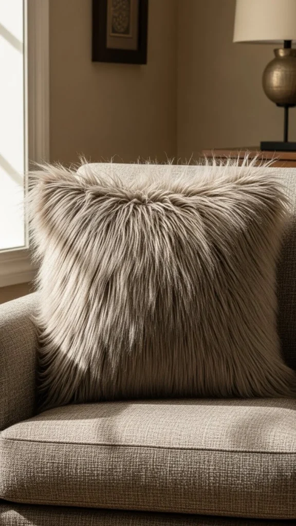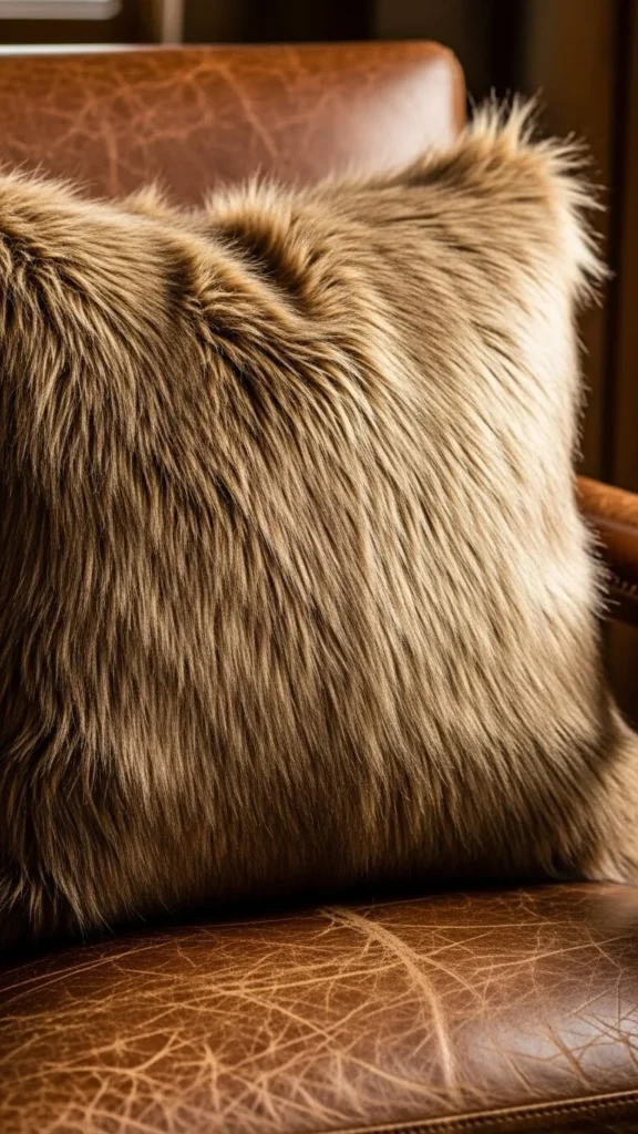 Brown faux-fur pillows add warmth and an earthy vibe to any room. They pair well with wooden or leather furniture for a rustic look. If you’re creating your own, choose a warm brown faux-fur fabric to create an inviting, cozy atmosphere.