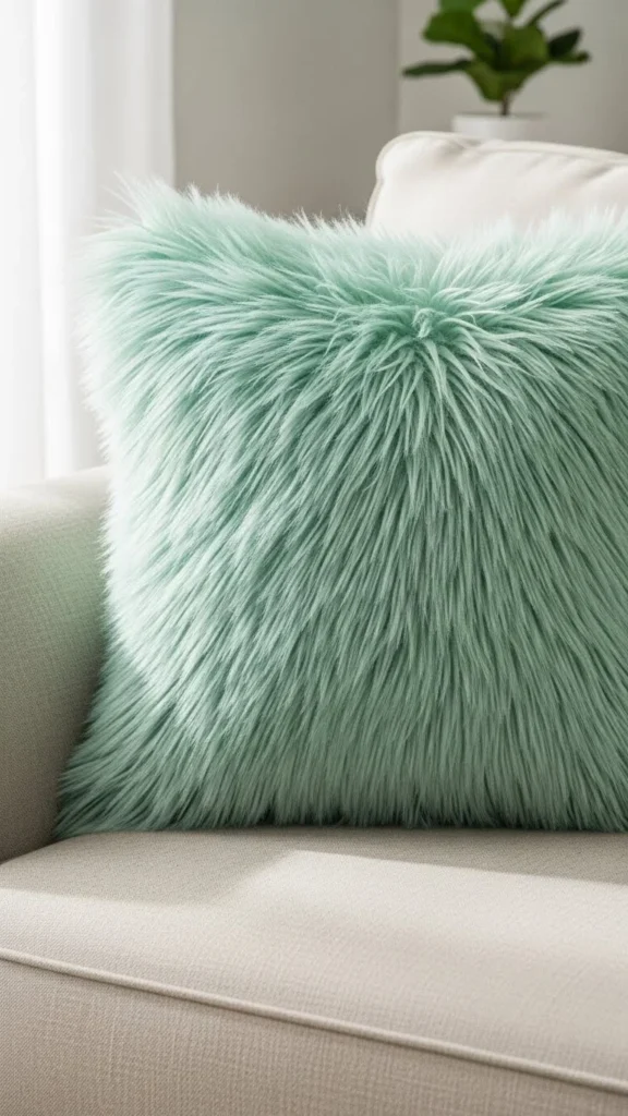 15. Mint Green Faux-Fur Pillow