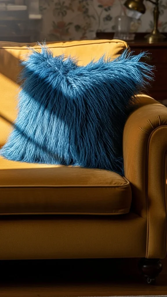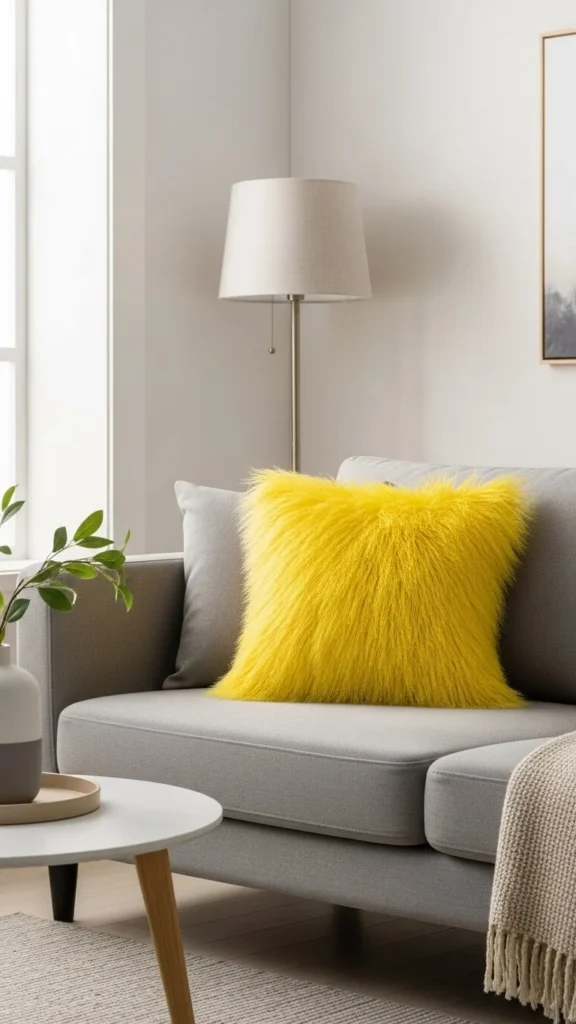 Bright yellow faux-fur pillows can instantly energize a room. Their bold, cheerful color brings a playful atmosphere, making them perfect for living rooms or casual spaces. Combine them with neutral tones like gray or beige for a balance of brightness and elegance. If you’re feeling crafty, you can easily create a DIY bright yellow faux-fur pillow by adding yellow faux-fur fabric to an old pillow cover.