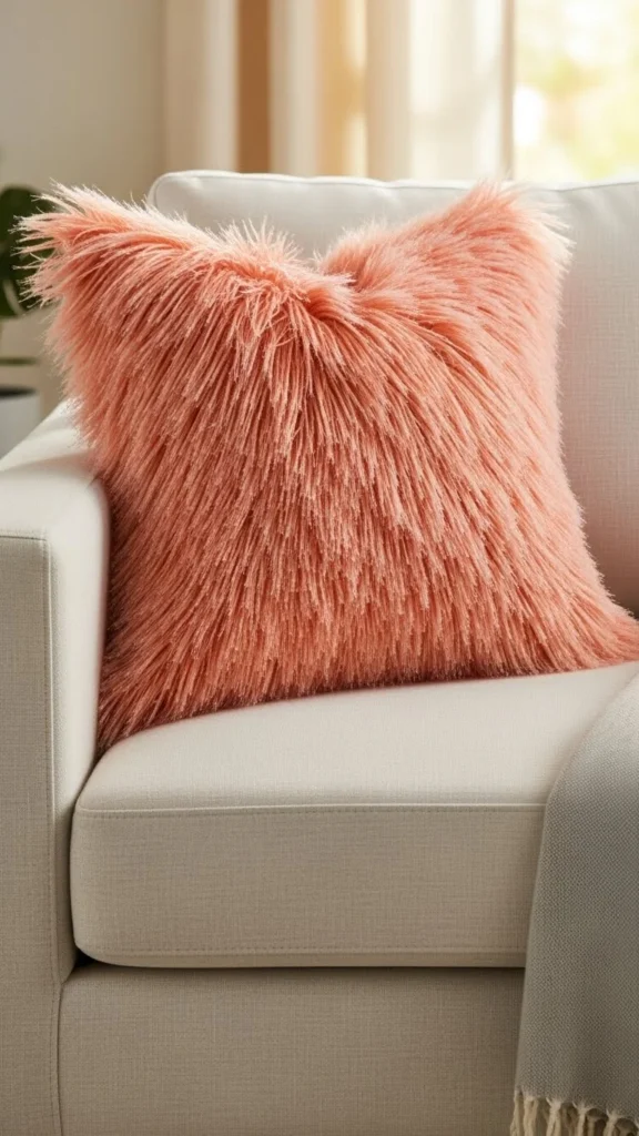 Coral is a lively color that adds vibrancy and warmth. Faux-fur pillows in coral make a statement without overwhelming the room. This color is ideal for living rooms or areas that need a pop of cheerful color.