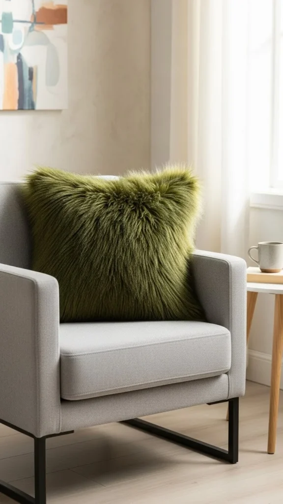 21. Earthy Olive Green Faux-Fur Pillow