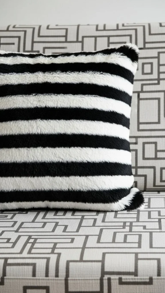 4. Black and White Striped Faux-Fur Pillow