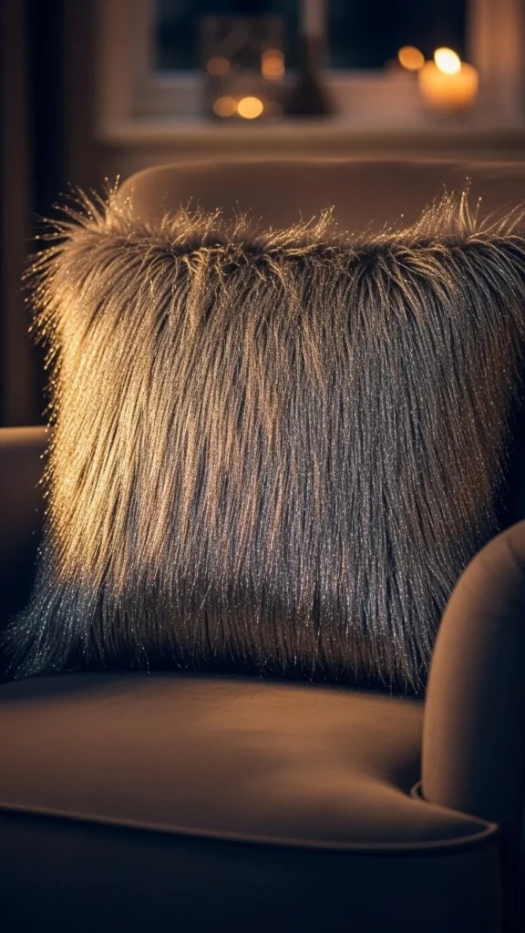 Silver glitter faux-fur pillows are perfect for the New Year. Their sparkle adds a festive touch, making them great for holiday parties or seasonal décor. You can make your own by adding glitter to your faux-fur fabric, or opt for faux-fur fabric with a metallic sheen for an easier solution.
