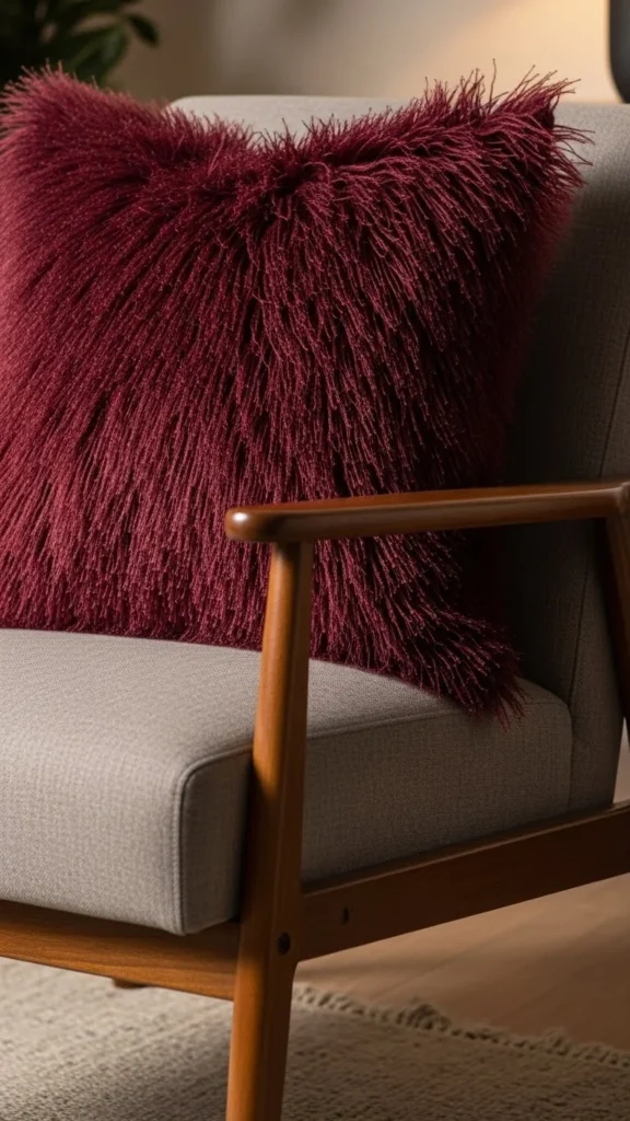 6. Deep Burgundy Faux-Fur Pillow