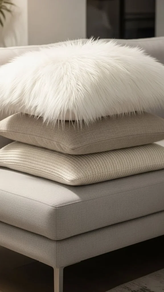 An ivory faux-fur pillow is perfect for creating a tranquil, elegant vibe. Its creamy, neutral tone complements any décor and brings instant warmth to a room. If you’re on a budget, you can purchase a faux-fur fabric remnant and sew it into a pillow cover for a more affordable alternative. The key is choosing a pillow that balances the softness of the fur with a strong fabric underneath to avoid slipping.
