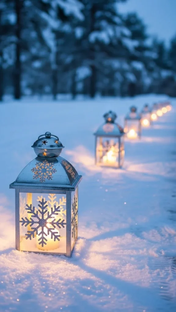 2. Silver Lanterns with White Snowflakes