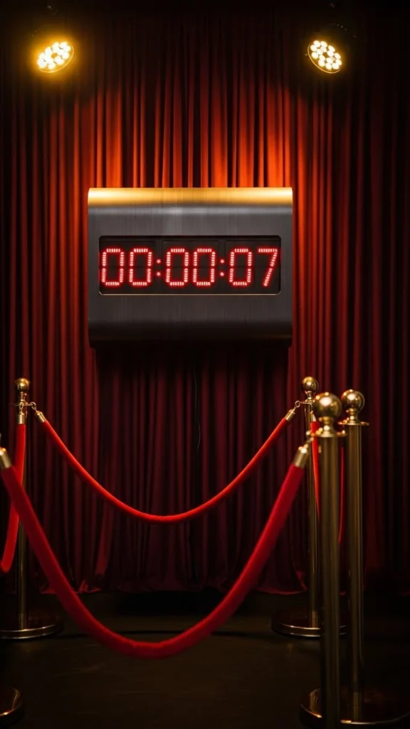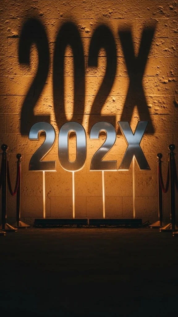 14. Velvet Ropes Framing a Giant “202X” Number Display